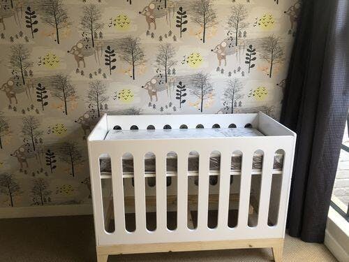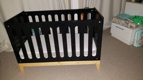 The cot is cute, but the quality is not that great bcz ours arrived with some chipped parts. Plus it comes with no assembling manual which a big big problem. And then once we got it together the sides dont fit perfectly. So we have to basically paint it again to hide the chipped parts.